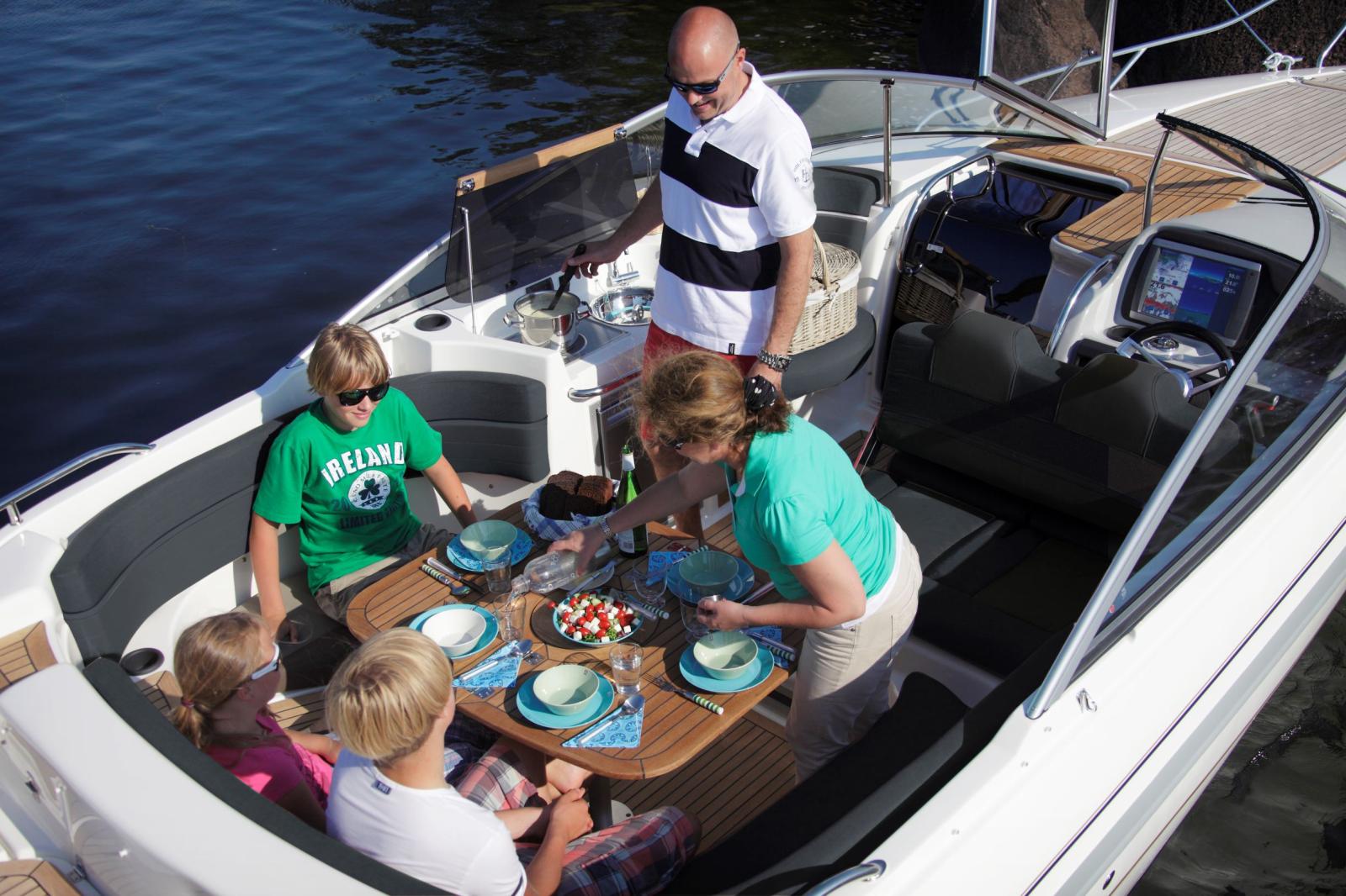 Tämä huippuvarusteltu Day Cruiser tarjoaa täyttä Yamarin-laatua huippuunsa hiotuista ajo-ominaisuuksista käytännöllisiin sisätiloihin. Vakiovarusteisiin kuuluu muun muassa jääkaappi, liesi sekä vesi-WC, jotka lisäävät mukavuutta myös pidempien ajojen aikana. Yamarin 79DC:ssä yöpyy mukavasti jopa kuusi henkilöä.